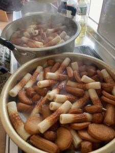 50人位の人数分だと大鍋3つ作りました。おでんは多く作るほどおいしくなりますね。